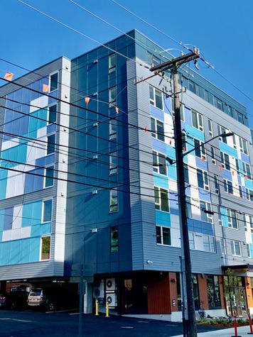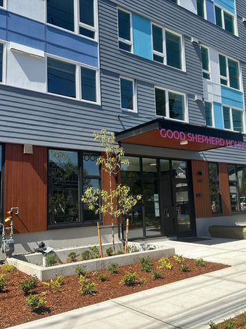 Good Shepherd Apartments is a seven-story, 86-unit, permanent supportive housing building located in Seattle's Central Area. This property opened in 2024 in partnership with the Lutheran Church of the Good Shepherd. Good Shepherd Apartments consists of 84 studio apartments, a unit for live-in staff, and a three-bedroom unit for church use. The building features two elevators, a community room, a rooftop deck, laundry, bike parking, and case management offices.