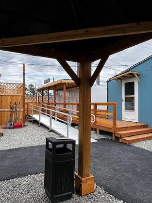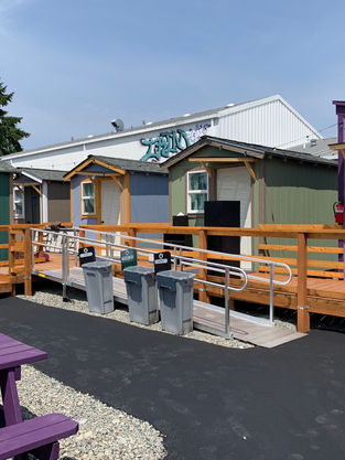 New Rosie's Village opened in its new Aurora Avenue location in July 2025 after being relocated from its previous U-District site, which LIHI is developing into affordable housing. The village consists of 37 8' x 12' heated and insulated tiny house units, staff offices, a community room, and kitchen, laundry, and hygiene facilities. There is 24/7 staffing, comprehensive case management, and behavioral health support onsite to help the program participants we serve obtain housing, employment, healthcare, education, and other services. The village is open to individuals, couples, and people with pets who are experiencing homelessness.